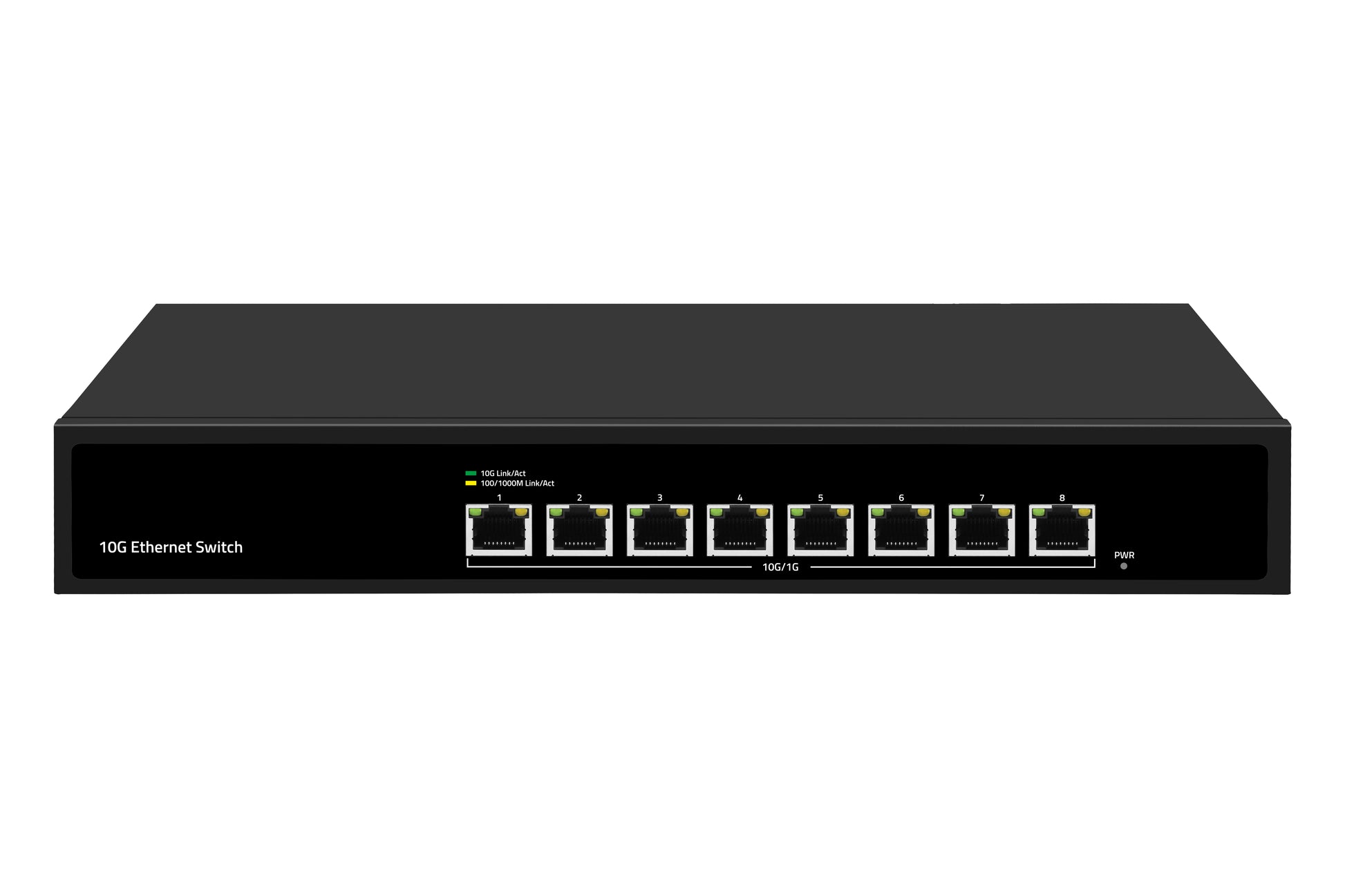 8 Port Full 10G Ethernet Switch Unmanaged 1G/2.5G/5G Auto-sensing Fanless CE AC Input